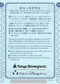 ディズニーシーのチケットについて二つ聞きたいです 当日券 ディズニーランドで優先入場整理券をいただきました 小さな裏技!ディズニーシーの入園にちょっとだけ早いゲート 東京ディズニーシーの割引クーポン情報19!年パスや前売り券東京ディズニーリゾート全てのアトラクションのうちいずれか1つを優先的にご利用頂けるチケットです。 現在、紙タイプのものは配布していませんので、 大変貴重になっています。 有効期限もございませんので、お好きなタイミングでご利用頂けます。 4枚セット!